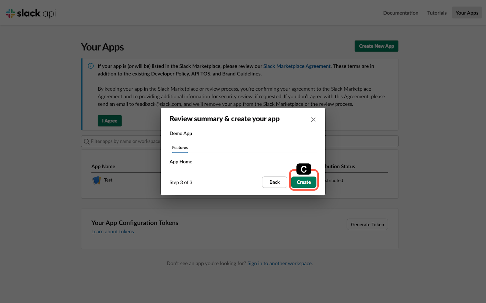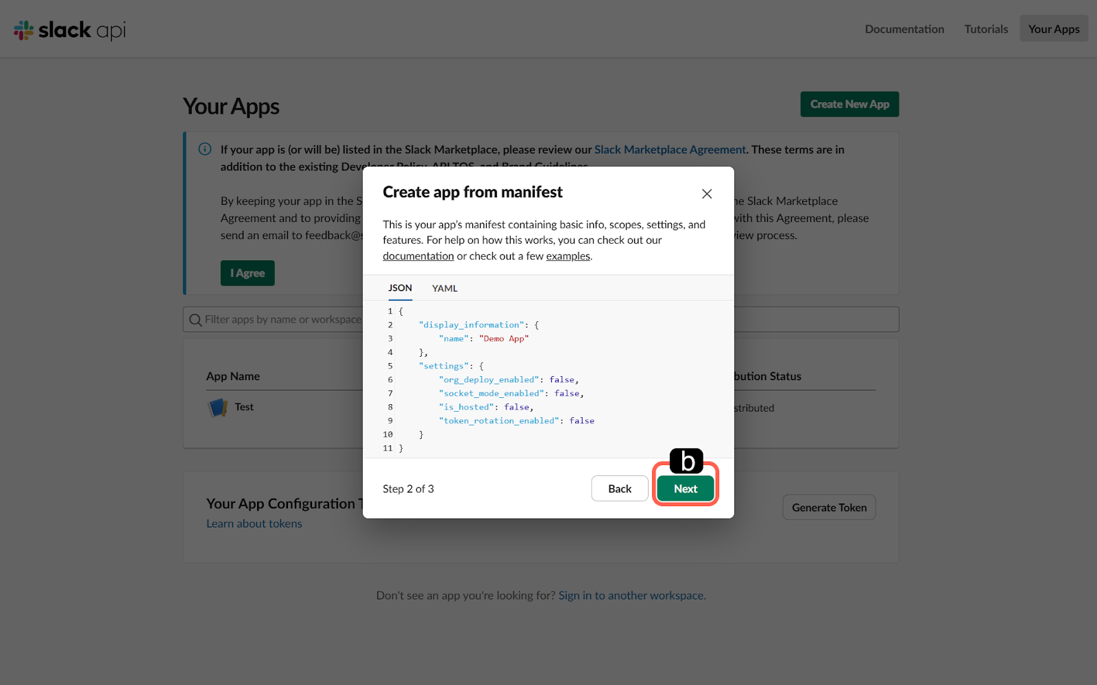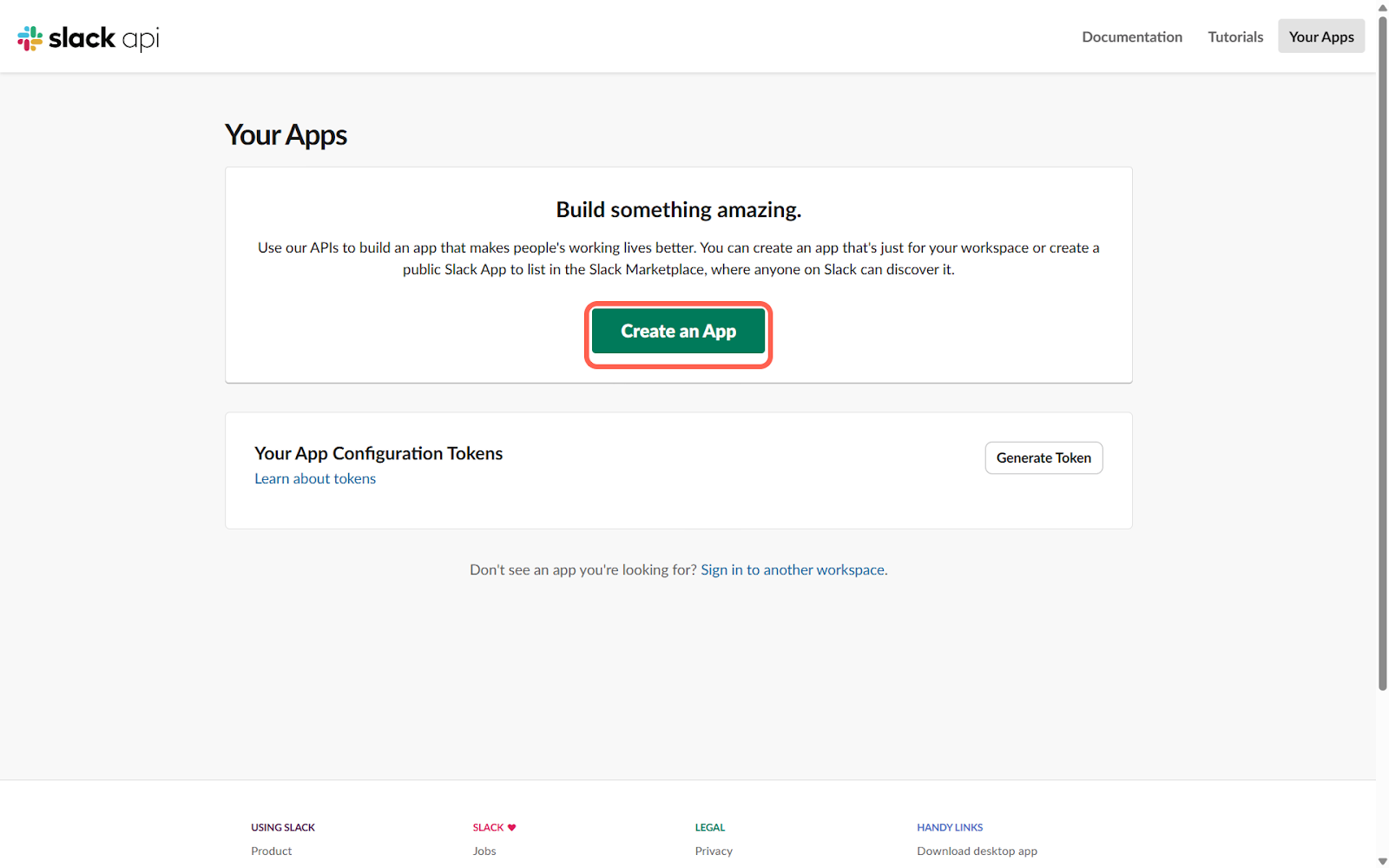 Entegrasyon sürecini başlatmak için öncelikle tarayıcınızdan api.slack.com/apps adresine giriş yapın.