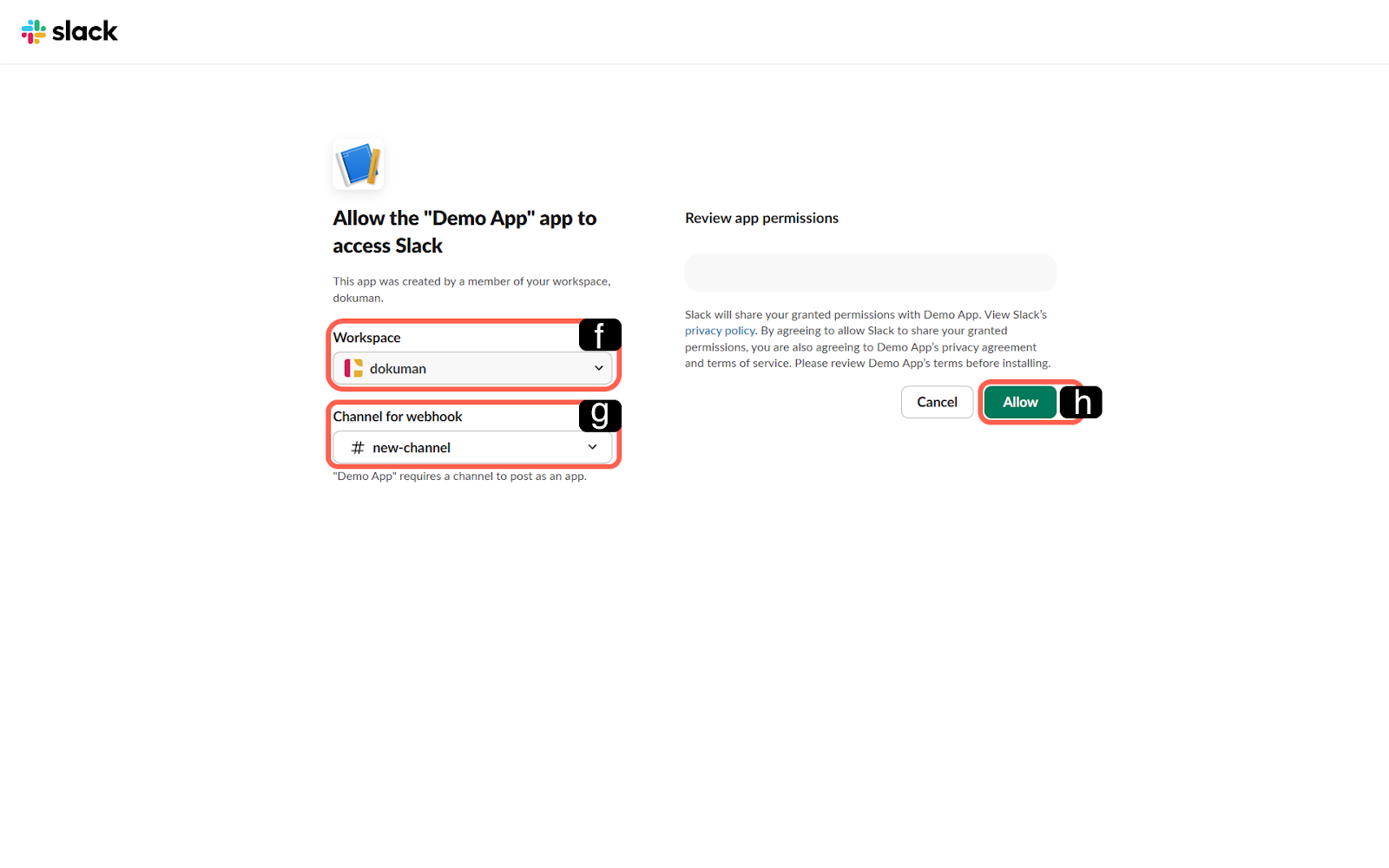 Webhookun erişim sağlayacağı Slack çalışma alanını belirleyebileceğiniz kısımdır.