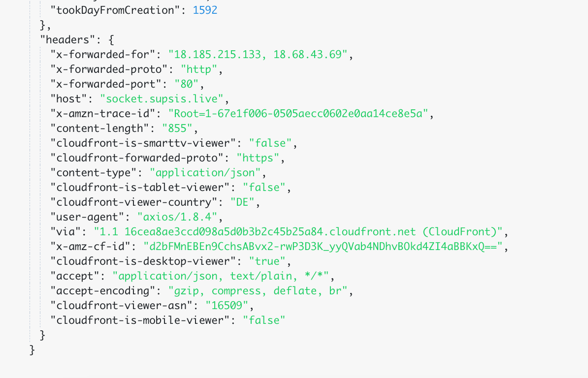 Kullanmak istediğimiz “socket.supsis.live”, değerini tutan “host” keyinin path karşılığını yazmak için ilk olarak veriyi aldığımız metot olan Webhook’u, ardından host keyini tutan headers objesini, son olarak veriyi tutan keyimiz olan host değerini alabiliriz.