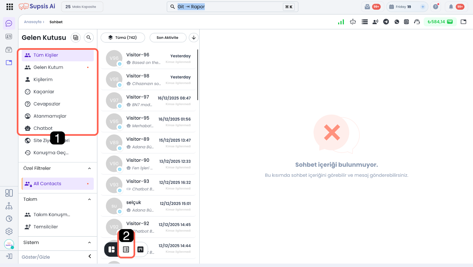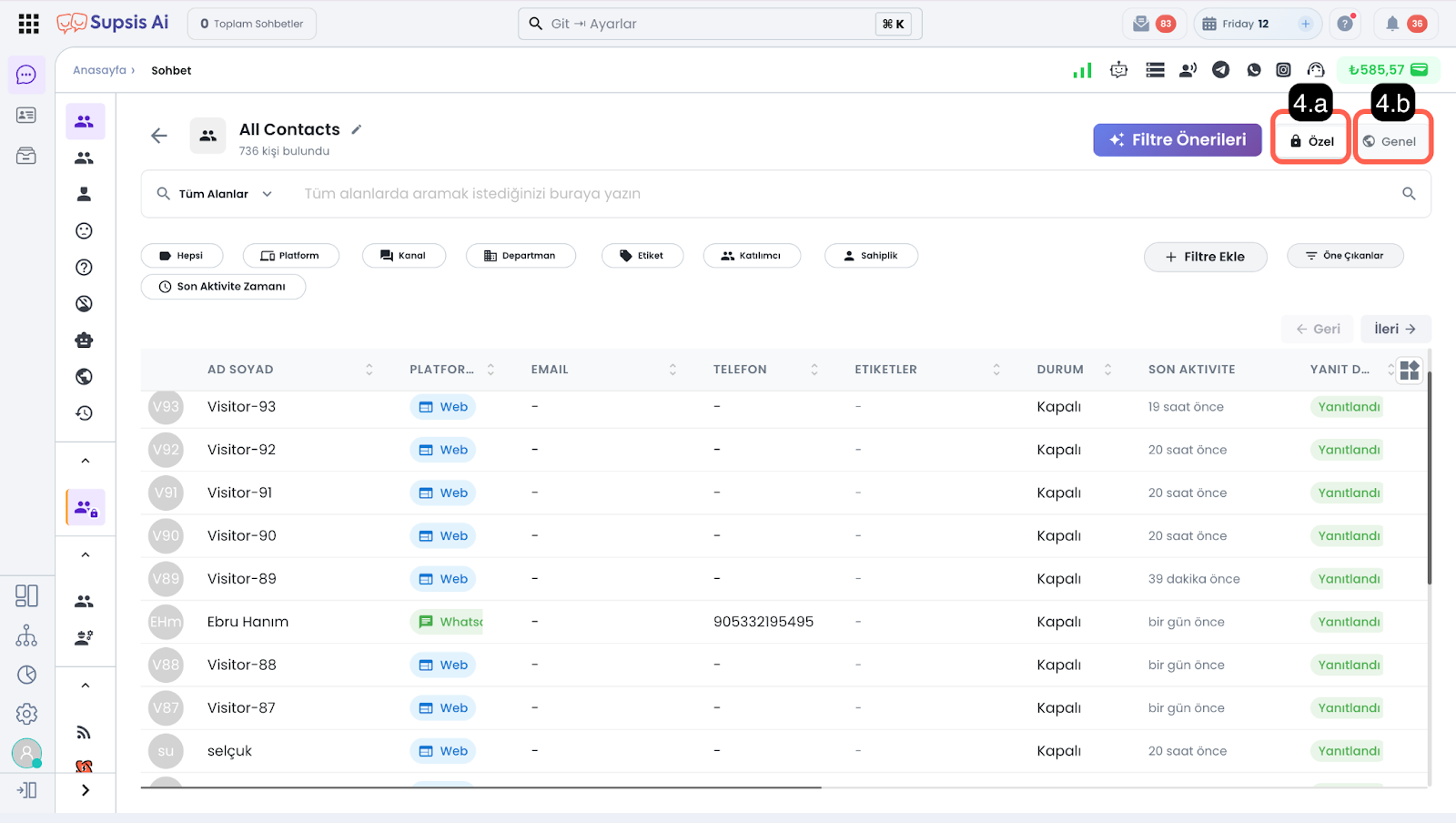 1.a – Oturum Durumu Filtrelenecek sohbet oturumlarının durumunu belirleyebileceğiniz alandır.