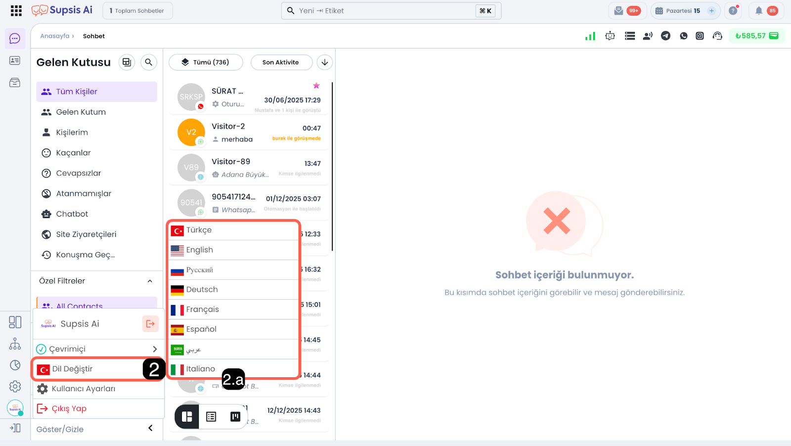 Kullanıcılar, panelde görüntülenen içeriklerin dil ayarlarını bu alan üzerinden kendi tercihlerine göre değiştirebilirler.