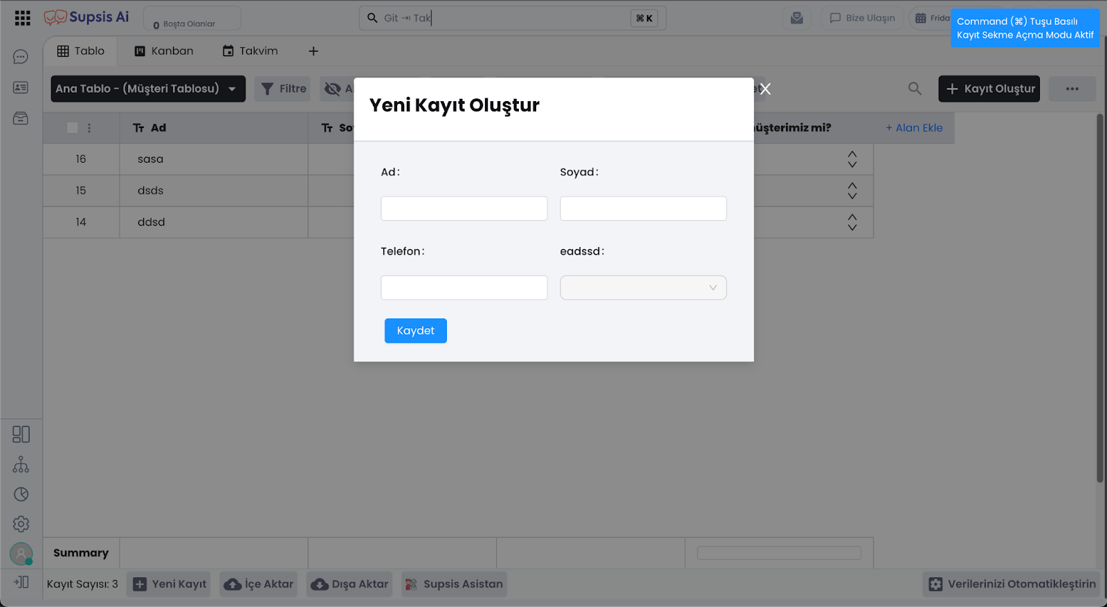📌 Video: Supsis Ai - Tablolar | Meta Alanları ⚙️