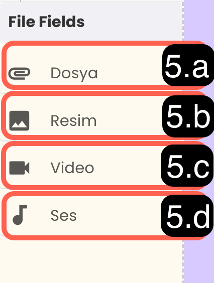 5.a - Dosya: Herhangi bir dosya türünü yüklemek ve saklamak için kullanılır. Belgeler, arşivler vb. için uygundur.