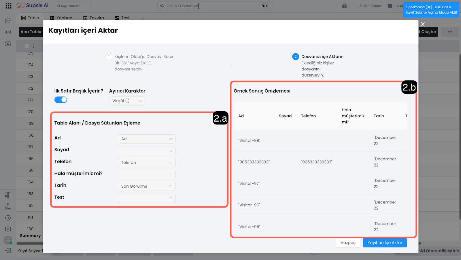 2.b - Önizleme: Yaptığınız eşleştirme içeriğinin önizlemesini bu bölümden görüntüleyebilirsiniz.
