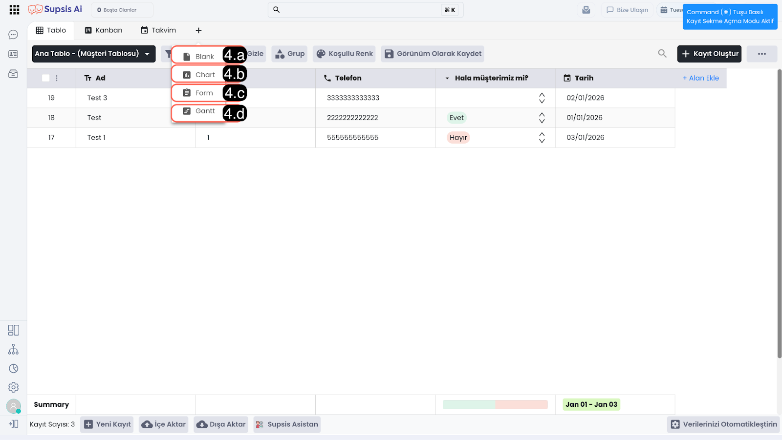 | 4 | Kayıt Oluşturma |