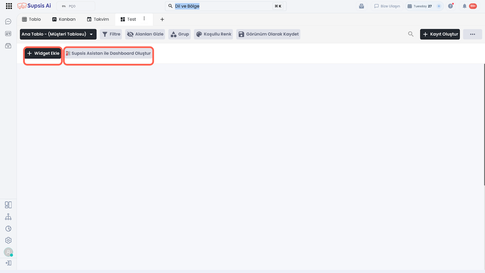 Özelleştirilmiş görünüm özelliği; widgetlar ile tablolarınızdaki verilerinizden beslenen grafikler ve raporlar oluşturmanıza olanak tanır. Sunulan özelleştirilmiş görünüm seçenekleri üzerinden tablo verileriniz üzerinden, raporlar ve grafikler oluşturabilirsiniz. Verilerin daha anlamlı sunumu için widget oluştururken widgette sunulcak veri içeriğini manuel belirleyebilir ya da yapay zekaya görmek istediğiniz grafik ve raporları yazarak bu işlemi yapay zeka tarafından gerçekleştirilmesini sağlayabilirsiniz.