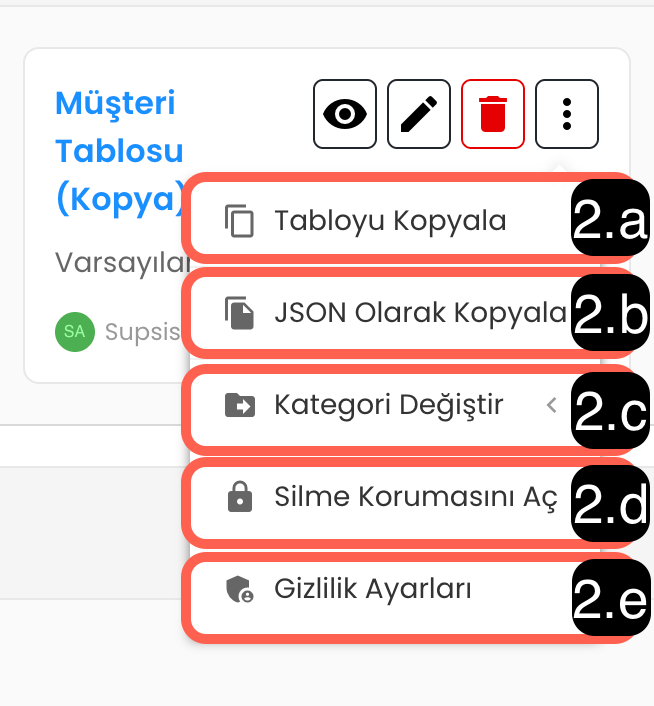 Bu seçenek ile, tablo adını ve açıklama bölümünün içeriğini güncelleyebilirsiniz.