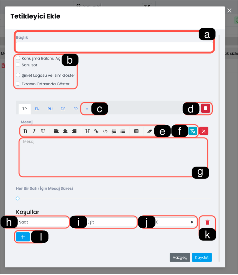 Tetikleyici mesajını otomatik olarak diğer dillere çevirebilirsiniz.